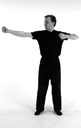 Diese Übung koordiniert die Bewegungen des Armes mit denen des Rumpfes. Das sich senkende Zwerchfell massiert die inneren Organe.